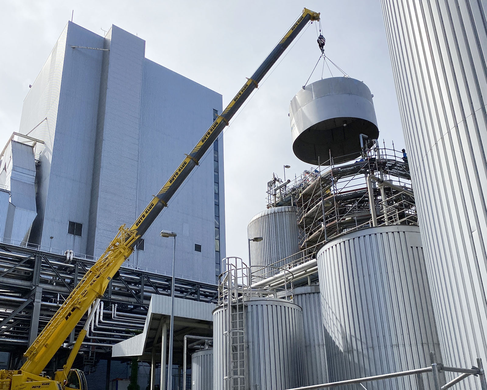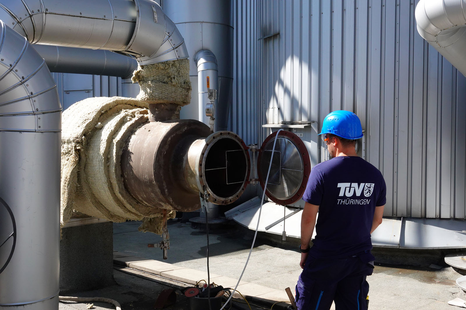 Um eine hohe Anlagenverfügbarkeit sicherstellen zu können, müssen die Anlagenteile regelmäßig gewartet, gereinigt und überprüft werden. Dafür setzt Mercer Rosenthal die gesamte Anlage einmal pro Jahr über einen Zeitraum von circa einer Woche außer Betrieb – auch um die notwendigen Prüfzyklen der überwachungsbedürftigen Anlagenteile einhalten zu können. Viele inneren Prüfungen an Großbehältern beziehungsweise deren Festigkeitsprüfung können nicht im laufenden Betrieb durchgeführt werden. Daher werden Prüfungen und notwendige Revisionen genau in dem Zeitraum des Stillstands durchgeführt. In diesem Jahr wurde mit der Errichtung eines zusätzlichen Kochlaugenverdampfers begonnen und der energetische Umbau der sogenannten Kocherei vorangetrieben. Insgesamt 12 Experten des Industrie Service vom TÜV Thüringen waren vom 1. September bis zum 9. September im Einsatz, um die notwendigen und teils äußerst aufwendigen Prüfungen der verschiedenen Druckanlagen, Dampfkessel und Druckbehälter durchzuführen. Insgesamt mussten über 100 Prüfungen bewerkstelligt werden – angefangen vom einfachen Druckluftspeicher, über Kondensatoren, Eindampfern bis hin zu Expansionsbehältern und Wärmeübertragern. Darüber hinaus wurden auch wasserrechtliche Prüfungen sowie innere Prüfungen an Flachbodentanks durchgeführt.
